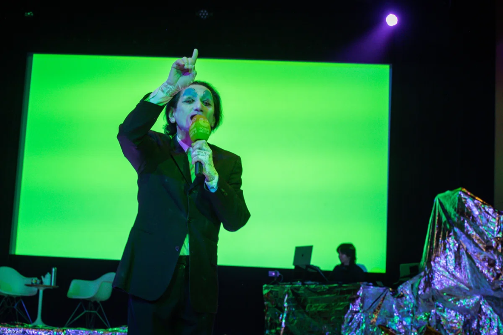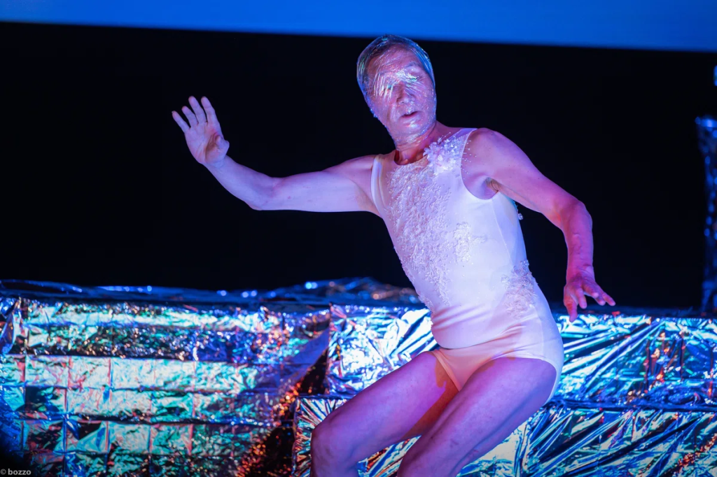 川口隆夫氏のもとへ集いし出演者の方々は、三浦一壮氏(御年85歳)、藤田真之助氏(ジビ君)、三好彼流氏(カル君)。さらに日替わりゲストに木部与巴仁さん、川村浪子さん、砂山典子さんのご乱入も。和田翼氏による鋭動、立ちくらむ梅原徹氏のノイズ、銀の彼方へ沈む小野龍一氏のピアノ、最終日は松丸契氏のサクソフォンも轟き。めくるめく映像&照明のもと「……私と一緒にお茶しませんか?」の招待を受けた1名様が、かずこ様のお茶会へと消えてゆく(エンターテインメント付)。